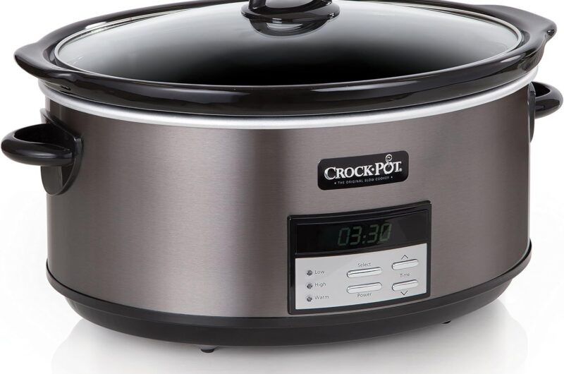 - Crock-Pot Large 8-Quart Programmable Slow Cooker with Auto Warm Setting Black Stainless Steel
